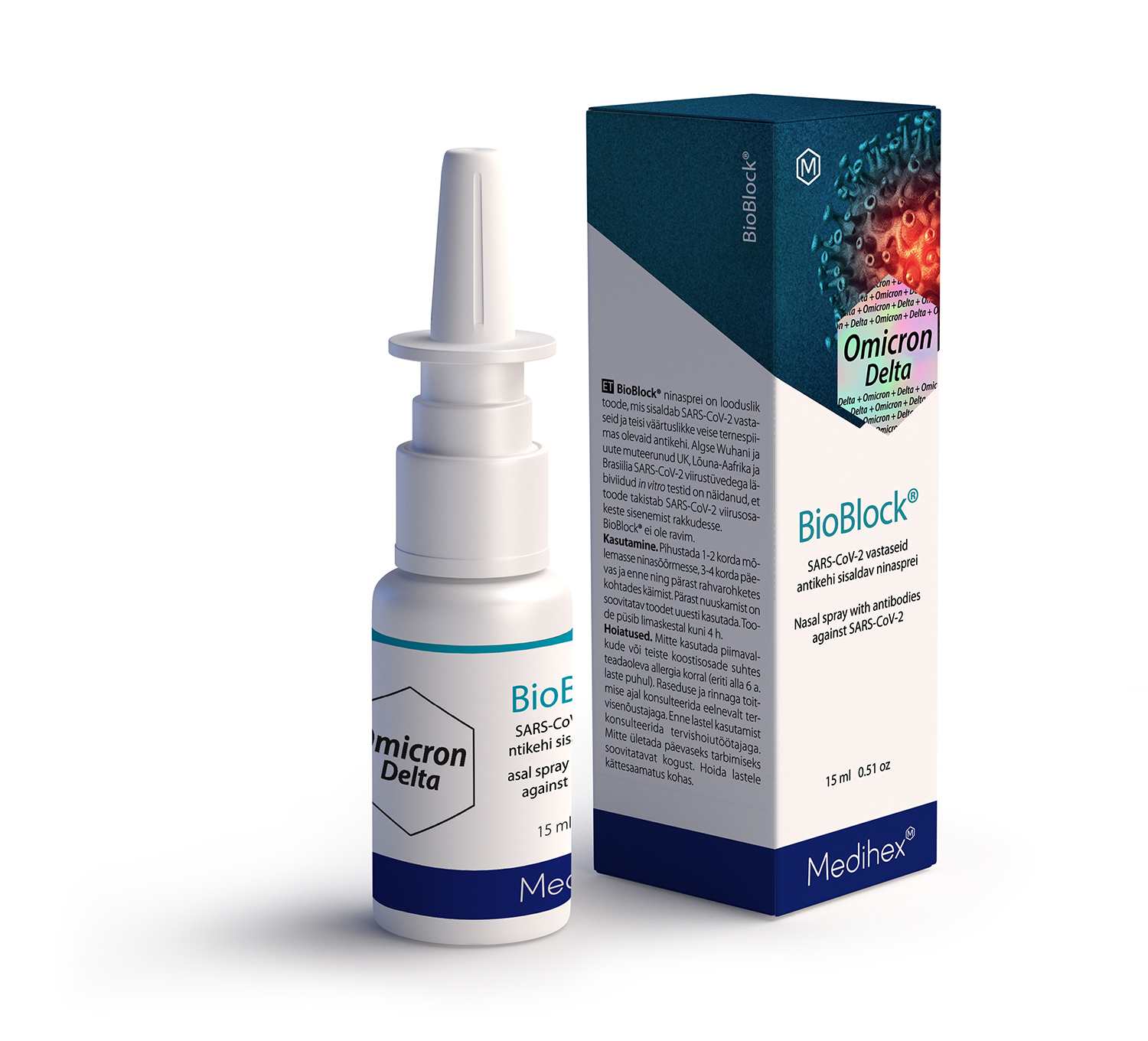 Ninasprei BioBlock on SARS-CoV-2 vastaseid antikehi sisaldav preparaat. See on looduslik toode, mis pärineb hüperimmuniseeritud veiste ternespiimast. Hüperimmuniseerimine tähendab, et loomadel on tekitatud immuunvastus SARS-CoV-2 ogavalgu vastu. In vitro katsed on näidanud, et toode takistab SARS-CoV-2 viiruseosakeste sisenemist rakkudesse. Samuti on edasised uuringud tõestanud, et ninasprei pakub kaitset nii algse Wuhani kui ka India päritolu delta ja kappa viirustüvede ning Suurbritannia, Lõuna-Aafrika ja Brasiilia tüvede vastu (1).