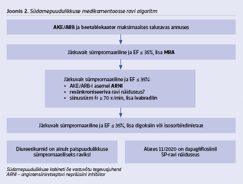 Ameerika Kardioloogide Kolleegium (ACC) andis 2021. aasta veebruaris välja uue ravisoovituse, mis rajaneb ekspertide konsensusel ning milles soovitatakse HFrEF-i ravis esmavaliku preparaadina kasutada ARNI-t ja täiendavalt südamepuudulikkuse sümptomite esinemisel lisada SGLT2 inhibiitor (10). 2021. aastal on oodata südamepuudulikkuse ravi optimeerimiseks täiendusi ka Euroopa Kardioloogide Seltsi väljaantavas ravijuhendis.