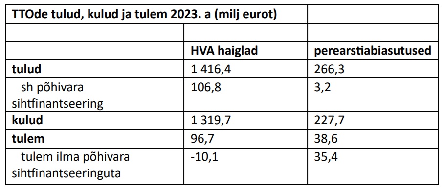 Haiglate kasum tekkis suures osas tänu põhivara sihtfinantseeringule haiglatele riigilt (ja väike osa KOVidelt). Perearstiabiasutustest valdav enamus (400 asutust 420-st) oli kasumis, keskmine tulem 92 000 eurot.