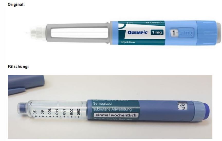 Euroopa Ravimiametit (EMA) teavitasid võltsitud ravimite leiust Austria ja Saksamaa, kelle hulgimüüjad tuvastasid ravimi Ozempic pakendeid elektroonses süsteemis kontrollides, et vöötkoodid olid kasutuselt kõrvaldatud. Samuti oli võltsitud Ozempicu pensüstaldel väliselt erinevusi originaalsüstlaga (vt PILT 1 üleval originaal ja all võltsing).